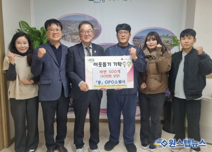 원스텝뉴스 이병희 기자 | OPO스쿼시 강인석 대표는 23일 어려운 이웃에게 전달해 달라며 광주시 오포1동에 라면 500개(50만 원 상당)를 기탁했다.