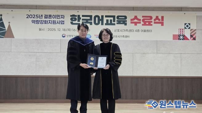 이번 한국어교육 수료식은 지난 1년간 운영된 한국어교육 과정을 마무리하며 학습 성과를 공유하는 뜻깊은 자리로, 이주배경 군포시민이 지역사회에 안정적으로 정착하고 원활하게 소통할 수 있도록 돕기 위해 마련됐다.