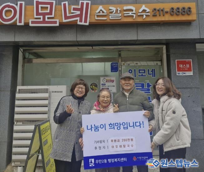원스텝뉴스 이병희 기자 | 수원시 팔달구 우만2동은 지난 23일, 이모네칼국수와 함께 이웃나눔 후원금 전달식을 진행했다고 밝혔다.