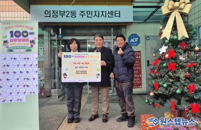 원스텝뉴스 이병희 기자 | 의정부시 의정부2동주민센터는 12월 23일 한국자유총연맹 의정부2동위원회가 ‘100일간 사랑릴레이 배턴 잇기’에 동참해 취약계층을 위한 성금 20만 원을 전달했다고 밝혔다.
