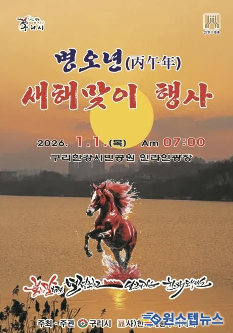 원스텝뉴스 천규영 기자 | 구리시는 오는 2026년 1월 1일 오전 7시, 구리한강시민공원 인라인 광장에서 ‘2026 병오년(丙午年) 새해맞이 행사’를 개최한다. 이번 행사는 시민들과 함께 새해 첫 해돋이를 맞으며 희망과 화합의 마음을 나누기 위해 마련됐다.