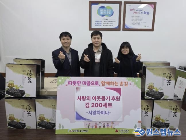원스텝뉴스 이병희 기자 | 의왕시 부곡동에 위치한 중식당 시앙차이나가 12월 23일 부곡동주민센터를 방문해 관내 취약계층에게 전달해달라며 조미김 200상자를 기탁했다.