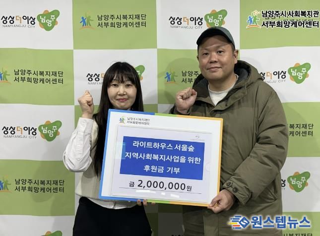원스텝뉴스 이병희 기자 | 남양주시는 지난 19일 서울시 성수동 소재 라이트하우스 서울숲교회가 지역사회 복지 증진을 위해 서부희망케어센터에 후원금 200만 원을 전달했다고 밝혔다.