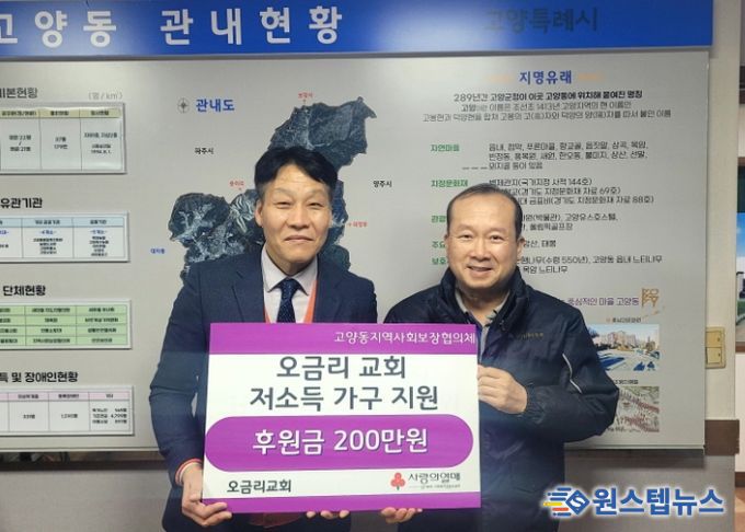 원스텝뉴스 이병희 기자 | 고양특례시 덕양구 고양동은 지난 23일 오금리교회에서 경제적 어려움을 겪는 이웃을 돕기 위해 고양동 지역사회보장협의체에 후원금 200만 원을 기탁했다고 밝혔다.