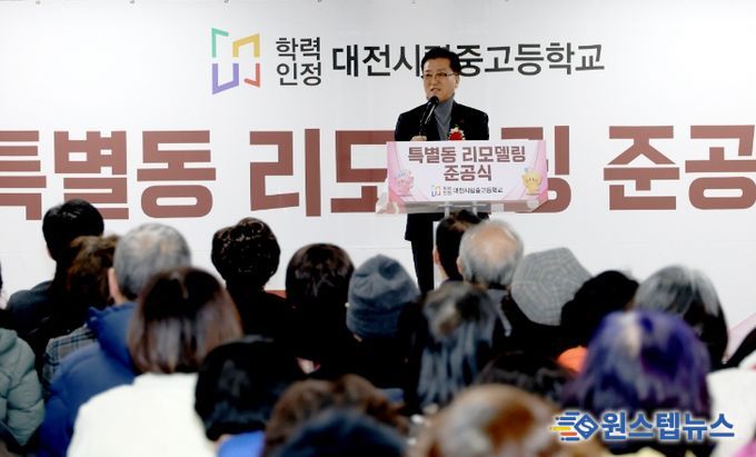 원스텝뉴스 이병희 기자 | 대전시의회 조원휘 의장은 24일 대전시립중고등학교 특별동 리모델링 공사 준공식에 참석해 준공을 축하하며, 배움을 향한 만학도들의 꿈과 용기를 응원했다.