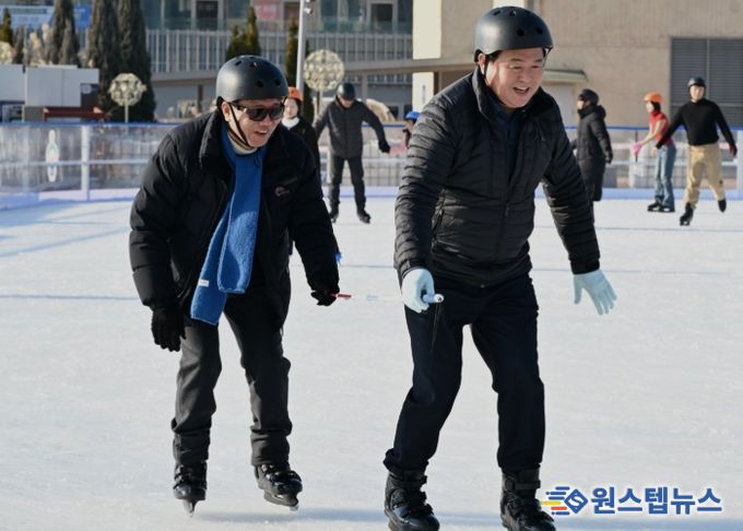 원스텝뉴스 이병희 기자 | 임병택 시흥시장이 12월 24일 문광만 경기도시각장애인연합회 시흥시지회장과 함께 거북섬 스케이트장을 방문했다.