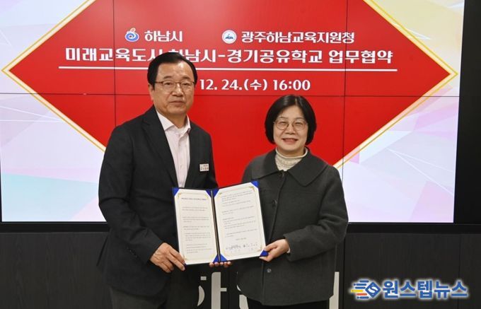 원스텝뉴스 이병희 기자 | 하남시는 24일 시청 집무실에서 경기도광주하남교육지원청과 지역 교육 협력을 강화하기 위한 '미래교육도시 하남시–경기공유학교 업무협약'을 체결했다고 밝혔다. 이날 협약식에는 이현재 하남시장을 비롯해 오성애 광주하남교육지원청 교육장 등 양 기관 관계자들이 참석했다.