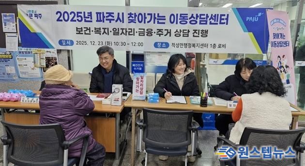 원스텝뉴스 이병희 기자 | 파주시는 지난 23일 적성면 행정복지센터에서 정보 취약계층을 대상으로 보건, 복지, 일자리, 금융, 주거 등 5개 분야를 한자리에서 상담하는 ‘찾아가는 이동상담센터’를 운영했다고 밝혔다.