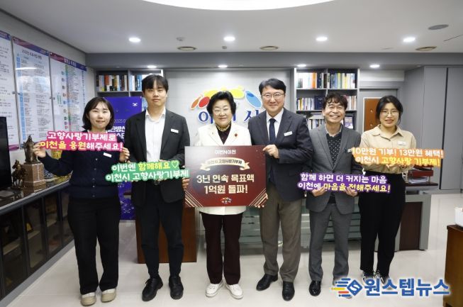 원스텝뉴스 이병희 기자 | 이천시는 고향사랑기부제 시행 이후 3년 연속 누적 기부금 1억 원을 돌파하며 제도의 안정적인 정착과 지속적인 성과를 이어가고 있다고 밝혔다.