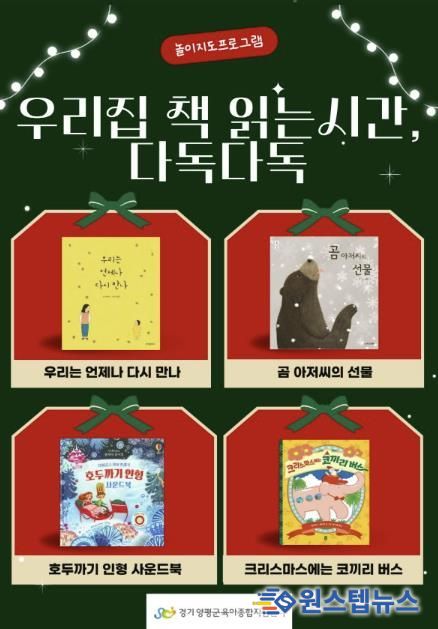 원스텝뉴스 이병희 기자 | 양평군육아종합지원센터는 연말을 맞아 관내 영유아 가정을 대상으로 가정에서 실천할 수 있는 부모교육과 놀이·독서 연계 프로그램을 운영했다.