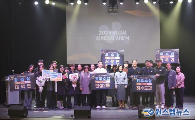 원스텝뉴스 이병희 기자 | 안성시는 지난 24일 평생학습관에서 ‘2025년 제12회 안성시 청렴대상 시상식’을 개최하고, 한 해 동안 청렴행정 실천에 기여한 우수부서 시상과 함께 더 공정하고 투명한 공직문화 조성을 위한 실천의지를 다지는 시간을 가졌다.