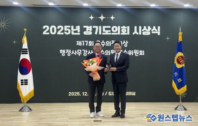 원스텝뉴스 이병희 기자 | 경기도의회 보건복지위원회 소속 김완규 의원(국민의힘, 고양12)이 12월 26일 2025년 행정사무감사 우수의원’으로 선정돼 금일 시상을 받았다. 김완규 의원은 올해 행정사무감사에서 보건·복지 분야 전반을 대상으로 근거 없는 보고와 보여주기식 행정을 바로잡고, 실질적인 제도 개선을 이끌어냈다는 평가를 받았다.