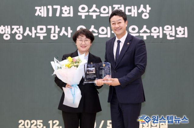 원스텝뉴스 이병희 기자 | 경기도의회 경제노동위원회 고은정 위원장(더불어민주당, 고양10)은 26일 경기도의회에서 열린 ‘2025년 경기도의회 시상식’에서 대한민국시도의회의장협의회가 주관하는 ‘제17회 우수의정대상’을 수상했다.