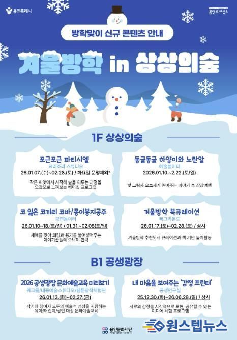 원스텝뉴스 이병희 기자 | 용인문화재단은 2026년 겨울방학을 맞아 복합문화공간 용인어린이상상의숲과 용인문화도시플랫폼 공생광장에서 아이들과 가족이 함께 즐길 수 있는 다양한 신규 콘텐츠를 선보인다.