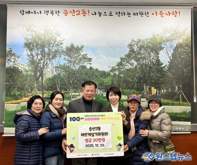 원스텝뉴스 이병희 기자 | 의정부시 송산2동주민센터는 12월 23일 송산2동 바르게살기위원회가 관내 어려운 이웃을 돕기 위해 ‘100일간 사랑릴레이 배턴 잇기’에 동참해 성금 20만 원을 기탁했다고 밝혔다.