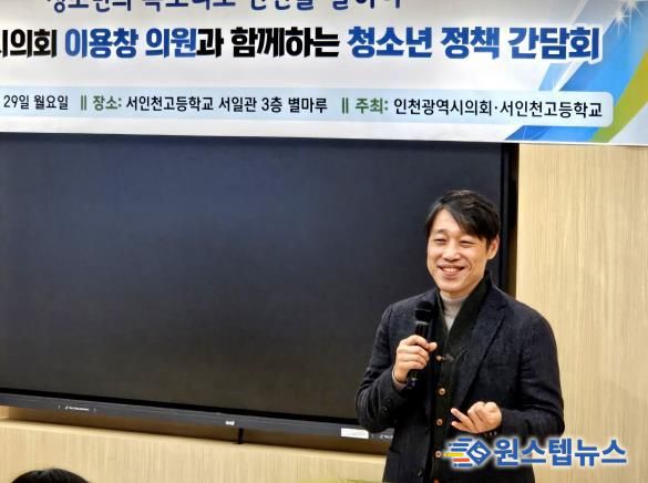 원스텝뉴스 이병희 기자 | 인천광역시의회 이용창 교육위원장(국·서구2)은 29일 서인천고등학교를 찾아 1·2학년을 대상으로 ‘청소년과 함께하는 정책 소통 간담회’를 가지며 지역 청소년들의 생생한 목소리를 들은 후 시정에 반영하고자 했다.