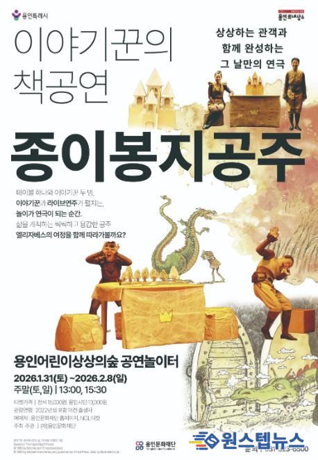 원스텝뉴스 천규영 기자 | 용인문화재단은 용인어린이상상의숲에서 오는 2026년 1월 31일부터 2월 8일까지 어린이 연극 〈종이봉지공주〉를 공연놀이터에서 선보인다.