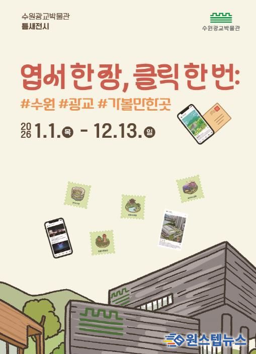 원스텝뉴스 천규영 기자 | 수원광교박물관이 2026년 1월 1일부터 12월 13일까지 틈새전시 ‘엽서 한 장, 클릭 한 번: #수원 #광교 #가볼 만한 곳’을 연다.