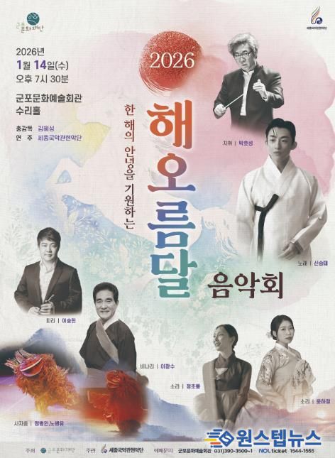 원스텝뉴스 천규영 기자 | 군포문화재단은 오는 1월 14일 오후 7시 30분, 군포문화예술회관 수리홀에서 신년 기획공연‘2026 해오름달 음악회’를 개최한다.
