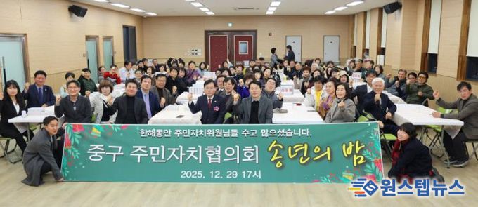 원스텝뉴스 이병희 기자 | 인천 중구의회는 지난 29일 율목동 커뮤니티센터에서 열린 '2025년 중구 주민자치협의회 송년회'에 참석했다.