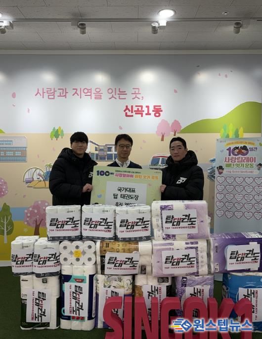 원스텝뉴스 이병희 기자 | 의정부시 신곡1동주민센터는 12월 26일 신곡동 국가대표 탑태권도이 휴지 369개를 기부했다고 밝혔다.