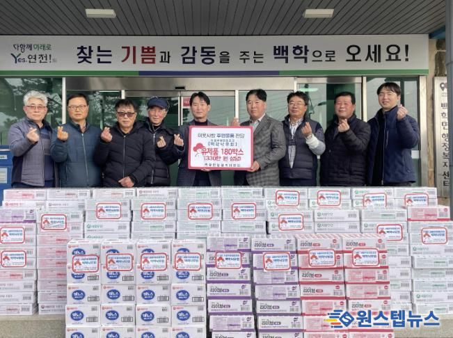 윤석문 백학면장은 “매년 잊지 않고 따뜻한 나눔을 실천해 주시는 서울우유협동조합 백학낙우회 회원들께 깊이 감사드린다”며 “매서운 겨울 추위로 어려운 시간을 보내고 있는 이웃들에게 소중히 전달하겠다”고 밝혔다.