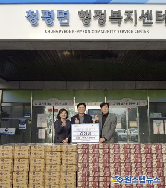 이에, 박성규 청평면장은 “어려운 시기에도 이웃을 먼저 생각하며 나눔을 실천해 주셔서 감사드린다”며 “기탁해 주신 물품은 도움이 필요한 이웃들에게 정성껏 전달해 따뜻한 마음이 잘 전해질 수 있도록 하겠다”고 전했다.