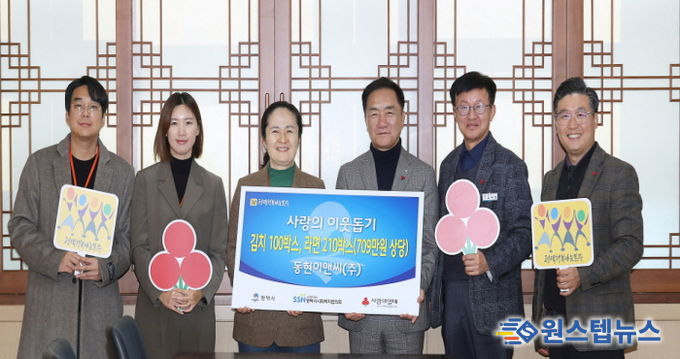 원스텝뉴스 이병희 기자 | 동현이앤씨㈜은 지난 24일 김장김치 100박스 및 라면 210박스(709만 원 상당)를 평택행복나눔본부에 전달했다.