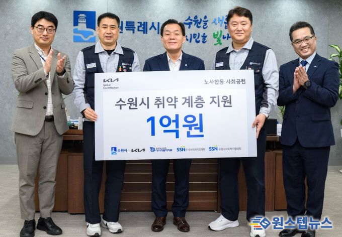 원스텝뉴스 이병희 기자 | 기아(주) 노사가 “수원시 취약계층 지원에 사용해달라”며 1억 원을 한국사회복지협의회에 기탁했다. 기부금은 수원시사회복지협의회를 통해 수원시 복지사각지대와 취약계층 지원에 사용될 예정이다.