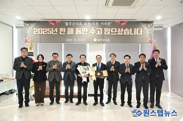 한편, 이번 시상은 31일 열린 2025년도 울주군의회 종무식에서 최길영 의장을 통해 전수됐다. 이날 종무식은 군의회 전 의원과 의회사무국 직원 등 30여 명이 참석한 가운데 대한민국지방의정봉사상 시상, 의정 발전 유공 공무원 시상, 기념촬영 등의 순으로 진행됐다.