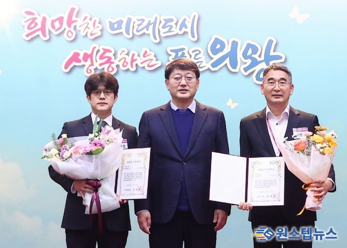 원스텝뉴스 이병희 기자 | 의왕시가 ‘제7회 의왕공무원대상’의 수상자로 기획예산과 이은웅 기획팀장과 공원녹지과 박범수 공원관리1팀장을 선정했다.