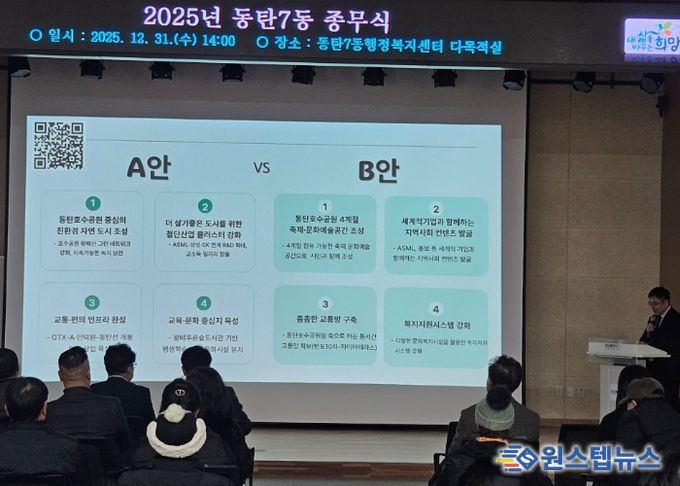 원스텝뉴스 이병희 기자 | 화성특례시 동탄7동은 12월 31일, 동탄7동 행정복지센터 다목적실에서 ‘2025년 종무식’을 열고 한 해를 마무리했다.