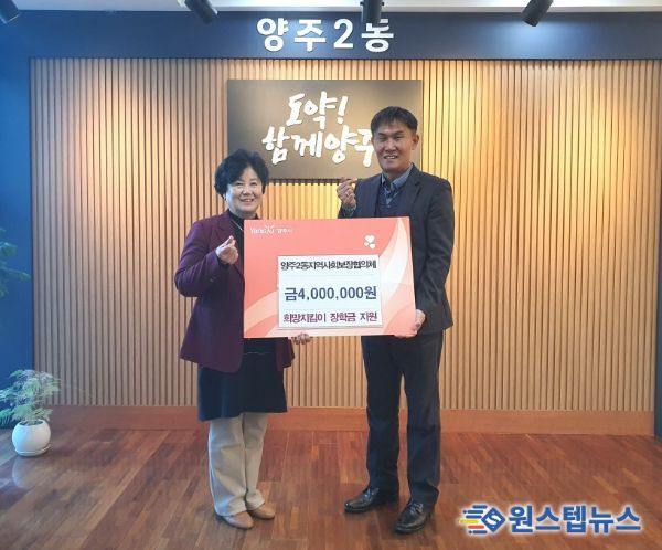 백기철 양주2동장은 “지역 학생들을 위해 따뜻한 나눔을 실천해 주신 양주2동 지역사회보장협의체에 깊이 감사드린다”며 “희망지킴이 장학금이 학생들에게 큰 응원과 용기가 되길 바란다”고 전했다.