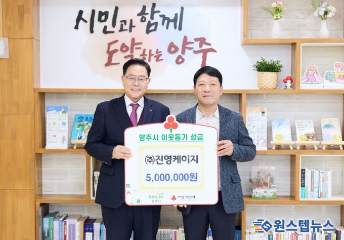 원스텝뉴스 이병희 기자 | 양주시가 31일 농업회사법인 ㈜진영케이지로부터 연말을 맞아 이웃돕기 성금 500만 원을 기탁받았다.