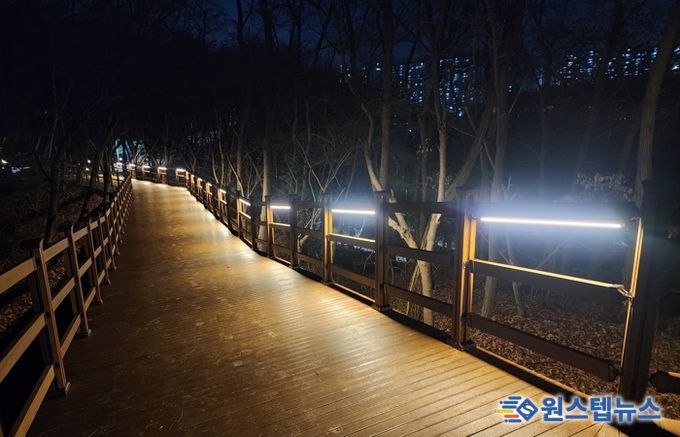 서봉숲속 근린공원 내 동선을 포함해 약 700m 규모로 이뤄진 숲길은 시설의 내구성을 높이기 위한 덱(DECK)길 설치와 노후한 시설 교체, LED조명을 설치해 다양한 연령층이 이용할 수 있는 보행 친화적 숲길 환경을 조성했다.
