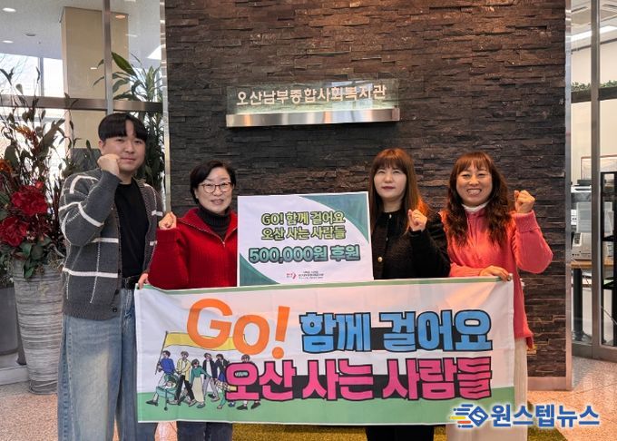 원스텝뉴스 이병희 기자 | 오산남부종합사회복지관은 지난 12월 31일 시민 걷기단체 ‘GO! 함께 걸어요 오산 사는 사람들’로부터 후원금 50만 원을 기탁받았다고 밝혔다.