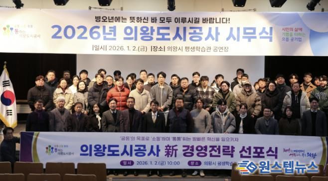 원스텝뉴스 이병희 기자 | 의왕도시공사는 1월 2일 평생학습관 공연장에서 열린 시무식에서 ‘신경영전략 선포식’을 개최하고, 급변하는 경영환경에 대응하기 위한 새로운 전략 방향과 실행 과제를 공식 발표했다.