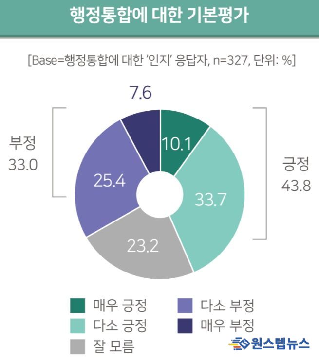 행정통합이‘지역 정체성 훼손 우려’가 있는지에 대해서는 긍정 30.9%, 부정 25.8%, 보통 43.3% 비율로 각각 대답했다.