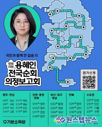 원스텝뉴스 이병희 기자 | 기본소득당 용혜인 의원이 2026년 병오년 신년을 맞아 오는 1월 9일부터 2월 4일까지 호남권을 시작으로 전국순회 의정보고회 '국민과 함께 한 걸음 더'를 개최한다.