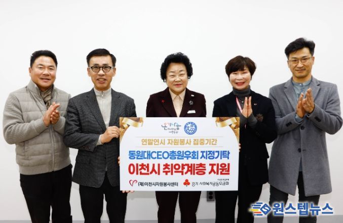 원스텝뉴스 이병희 기자 | (재)이천시자원봉사센터는 동원대 CEO 총원우회가 연말연시 집중 자원봉사 기간을 맞아 이천시 취약계층 지원을 위한 성금 300만 원을 기탁했다고 7일 밝혔다.