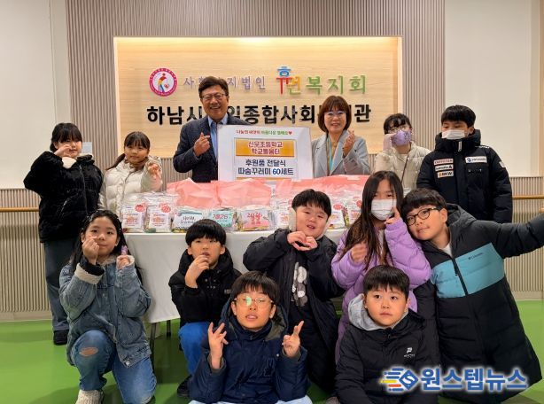 원스텝뉴스 이병희 기자 | 신우초등학교 학교돌봄터(센터장 서정애)는 지난 12월 29일 하남시감일종합사회복지관(사회복지법인 휴먼복지회 운영)에 따숨 꾸러미 60세트를 전달했다.