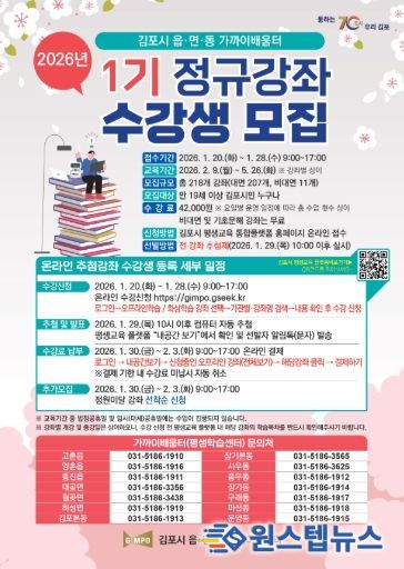 원스텝뉴스 이병희 기자 | 김포시는 시민의 평생학습 참여 기회를 확대와 지역 밀착형 학습 환경 조성을 위해 2026년 읍면동 가까이배움터 제1기 수강생을 모집한다고 밝혔다.
