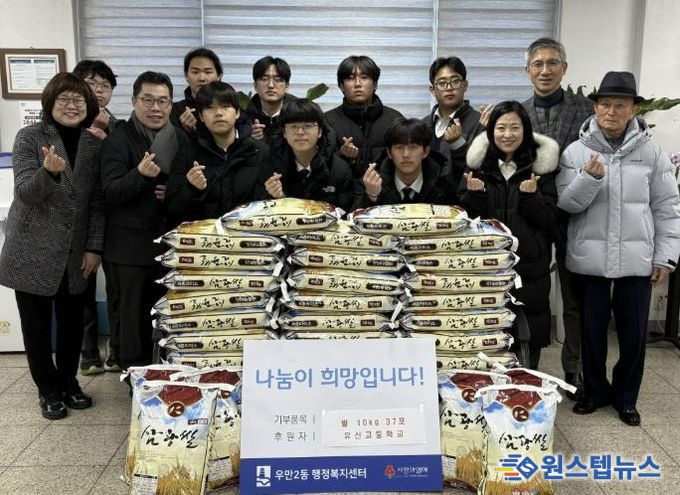 원스텝뉴스 이병희 기자 | 지난 1월 8일, 유신고등학교 학생회에서는 따뜻한 마음을 담아 백미 10Kg 37포를 수원시 팔달구 우만2동에 전달했다고 밝혔다.