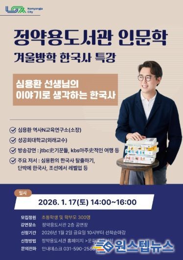 원스텝뉴스 천규영 기자 | 남양주시는 오는 17일 오후 2시 정약용도서관 2층 공연장에서 겨울방학 인문학 특강 ‘이야기로 생각하는 한국사’를 개최한다.