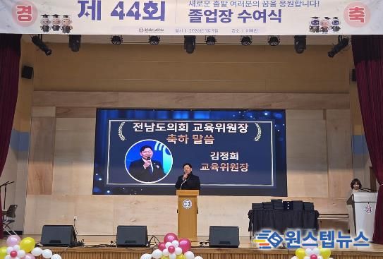 원스텝뉴스 이병희 기자 | 김정희 전남도의회 교육위원장은 1월 9일, 순천효산고등학교에서 열린 제44회 졸업식에 참석해 졸업생들을 격려하며 따뜻한 축사를 전했다.