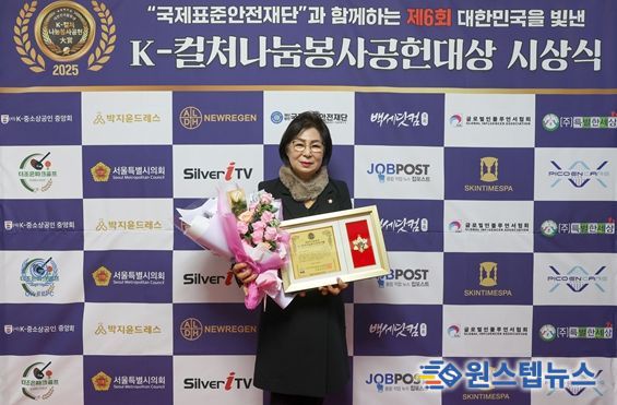 원스텝뉴스 이병희 기자 | 성동구의회 남연희 의장이 지난 12월 10일 서울 강서구 스카이아트홀에서 열린 ‘제6회 K-컬처나눔봉사공헌대상’ 시상식에서 의정활동 나눔봉사공헌대상을 수상했다고 밝혔다.