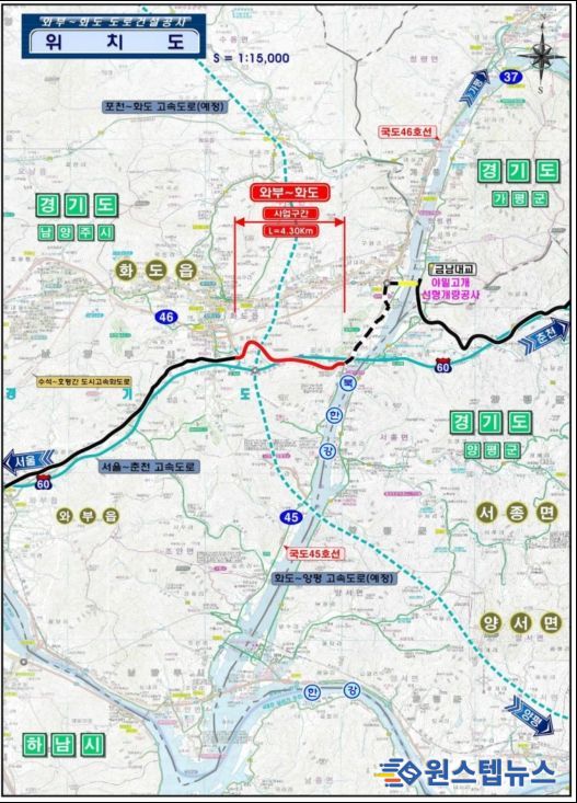 원스텝뉴스 이병희 기자 | 국가지원지방도 86호선 와부~화도 4.3㎞ 구간이 5년 8개월 동안의 공사를 마치고 13일 전격 개통된다.