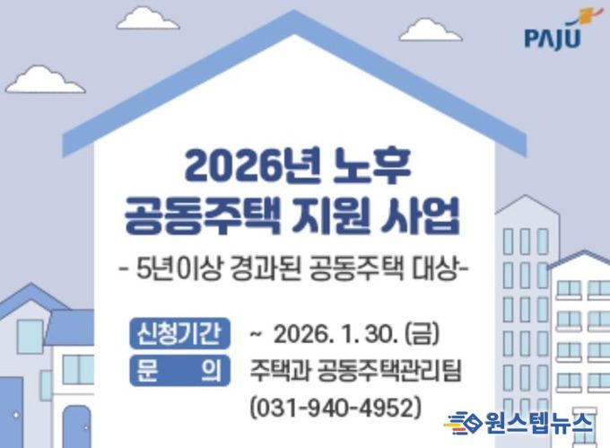 신청 기한은 오는 30일까지이며, 파주시청 주택과를 방문해 신청하거나 등기우편으로 신청서를 제출하면 된다. 선정된 단지는 현장 조사와 심의를 거쳐 2026년 11월까지 사업을 추진하게 된다.