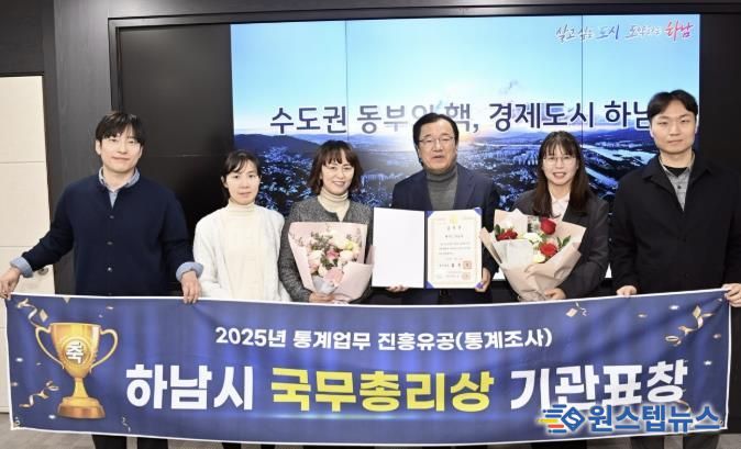 원스텝뉴스 이병희 기자 | 하남시는 국가데이터처가 주관하는 통계조사에서 통계업무 발전에 기여한 공로를 인정받아 2026년 1월 9일 통계인재개발원에서 ‘2025년 통계업무 진흥유공’부문 국무총리 기관표창을 수상했다고 밝혔다.
