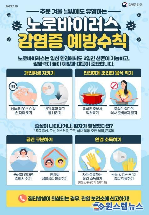 원스텝뉴스 이병희 기자 | 오산시보건소는 최근 기온 하강으로 겨울철에 주로 발생하는 노로바이러스 감염증의 유행 가능성이 높아짐에 따라 시민들에게 각별한 주의를 당부했다.